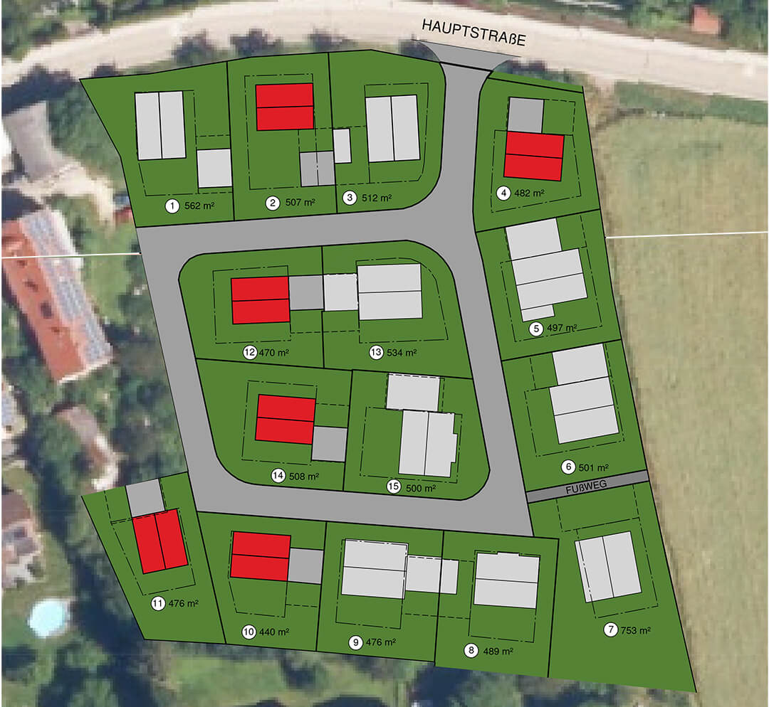 Insgesamt stehen hier 15 Grundstücke zur Verfügung: